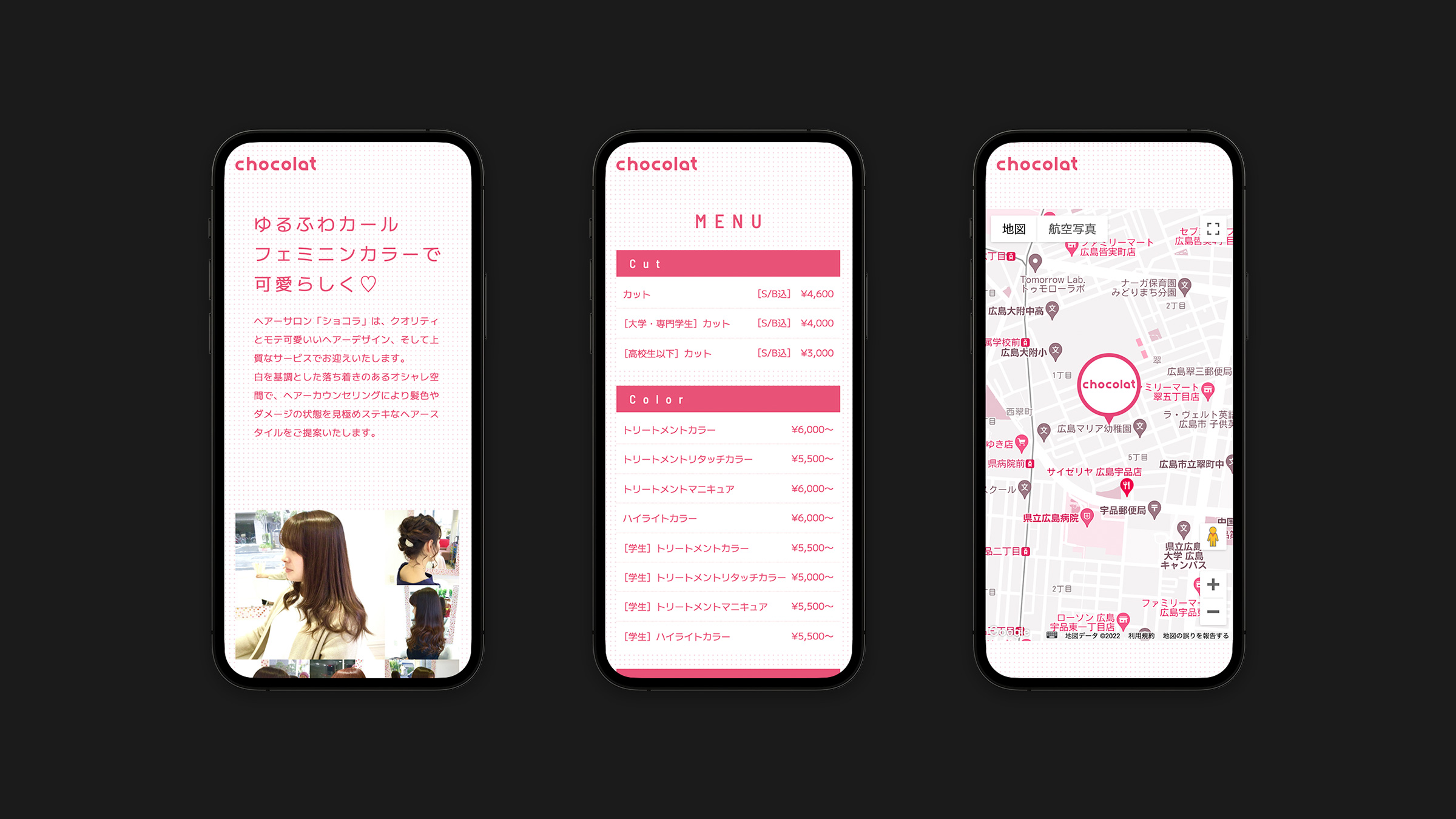 ヘアーサロン「ショコラ」のウェブサイト制作