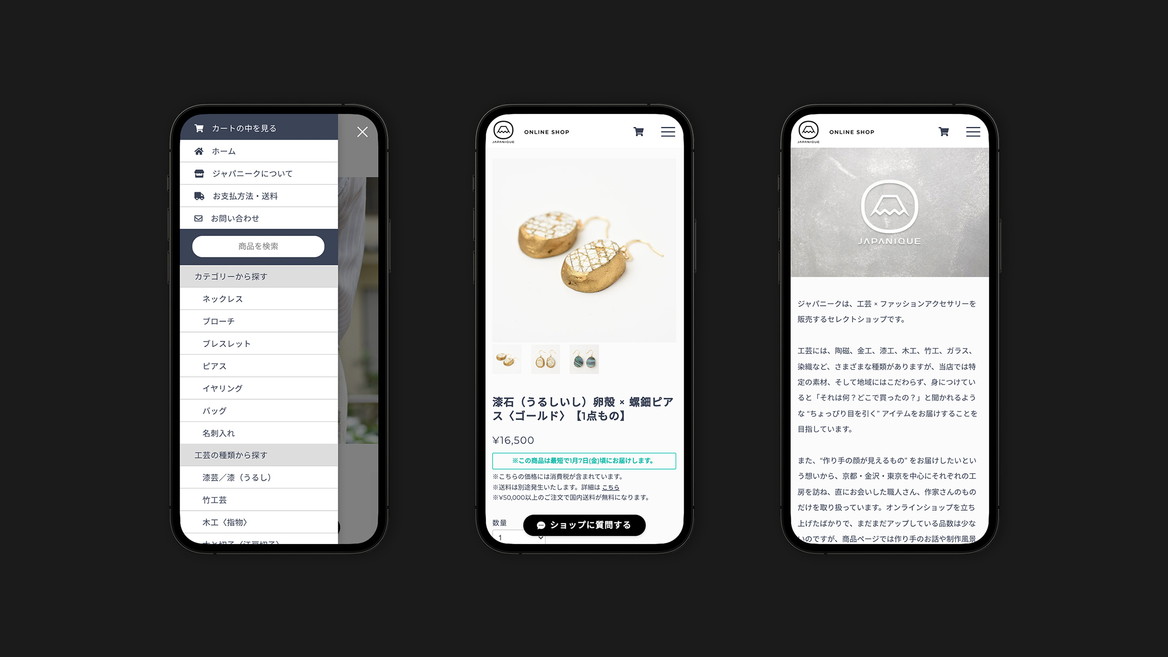 日本の工芸品アクセサリーを取扱う「ジャパニーク」のECサイト制作